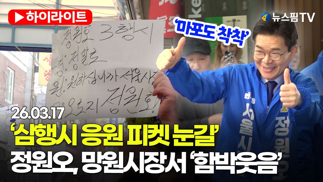 [스팟Live] ‘삼행시 응원 피켓 눈길’…정원오, 망원시장서 웃음꽃 만발 | 26.03.17 정원오 서울시장 예비후보 하나씩 마포 착착