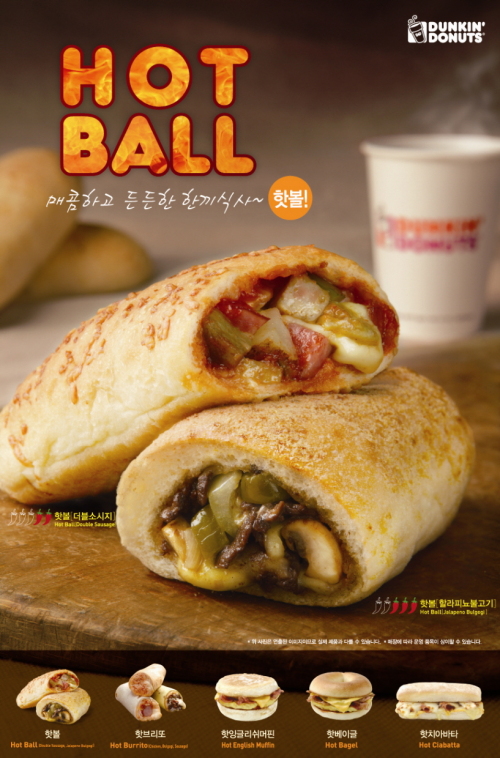 던킨도너츠 관계자는 “핫 볼은 매콤한 맛을 좋아하는 우리나라 사람들의 입맛에 맞도록 선보이는 메뉴이다”며, “던킨에서는 아침식사대용으로 많이 찾는 핫브레드 메뉴를 더욱 다양하게 개발해 고객의 니즈를 만족시킬 예정이다”고 말했다.