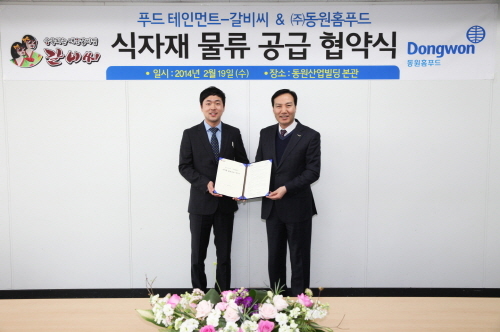 동원홈푸드는 이번 협약을 통해 푸드테인먼트(대표 이주성)가 운영하는 ‘갈비씨’ 전국 20여 개 매장에 연간 50억원 상당의 식자재를 공급한다.