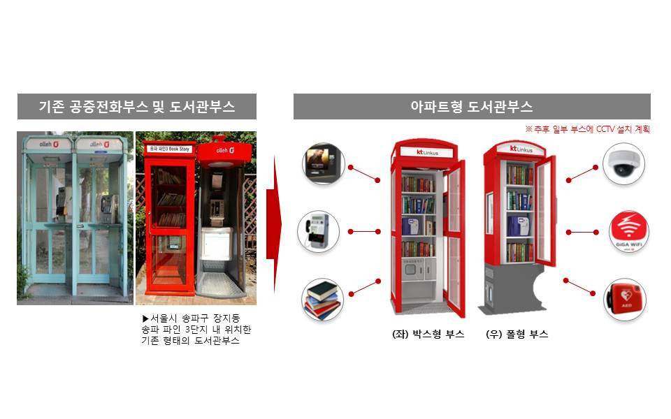 29일 KT링커스는 BC카드, KT텔레캅, 후후 등 KT그룹사와 함께 주민 복지향상을 위해 특별 제작한 ‘도서관 공중전화부스(이하 도서관부스)’ 보급 작업을 시작한다고 밝혔다.