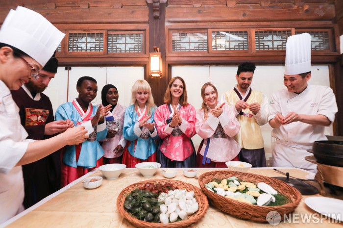 [서울=뉴스핌] 이윤청 기자 = 17일 오전 서울 중구 한국의집에서 열린 '어서와 추석愛 한국의집은 처음이지?' 미디어행사에서 주한 외국인들이 추석음식을 만들고 있다. 오는 23일부터 25일까지 외국인과 외국인 동반 내국인을 대상으로 진행되는 이번 행사에서는 한국 추석과 관련된 전통문화를 다양하게 만나볼 수 있다. 2018.09.17 deepblue@newspim.com