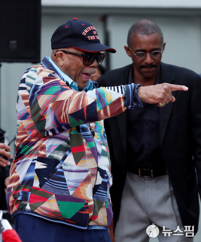| [로스앤젤레스 로이터=뉴스핌] 정윤영 인턴기자 = 27일(현지시각) 작곡가 퀸시 존스(왼쪽)가 캘리포니아 TCL 차이니즈 극장 앞 명예의 거리에 도착했다. 이날 퀸시 존스는 명예의 거리에 이름을 올리는 '핸드 앤 풋 프린팅' 행사에 참석한다. 2018.11.28. |