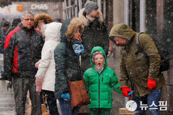 | [뉴욕 로이터=뉴스핌] 김민정 기자 = 12일(현지시간) 눈이 내리는 미국 뉴욕 맨해튼 타임스퀘어의 풍경. 2019.2.12. |