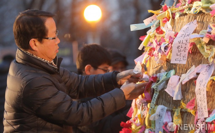 [서울=뉴스핌] 윤창빈 기자 = 19일 오후 서울 송파구 서울놀이마당에서 열린 2019 송파구 정월대보름 한마당에서 한 참가자가 소원지를 달집에 묶고 있다. 2019.02.19 pangbin@newspim.com