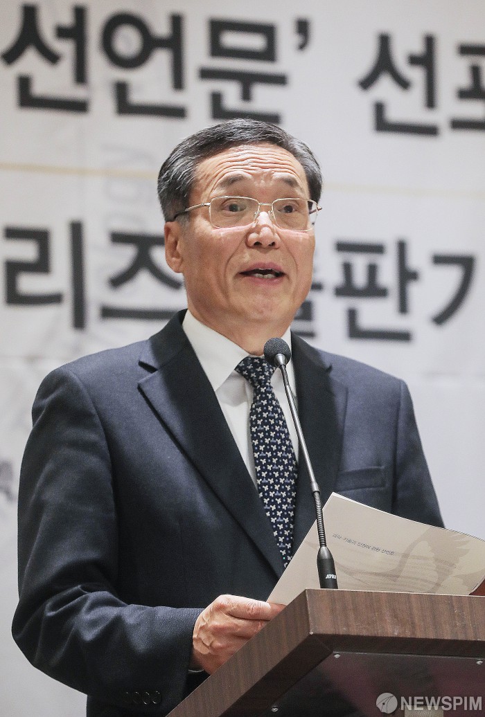 [사진] 선언문 낭독하는 김승조 한국과학기술한림원 부원장