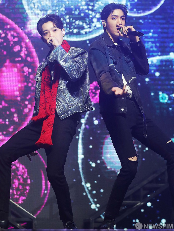 [서울=뉴스핌] 윤창빈 기자 = 그룹 우석X관린이 11일 오후 서울 광진구 예스24라이브홀에서 열린 ‘우석X관린 데뷔 쇼케이스’에서 열정적인 무대를 보여주고 있다. 미니 1집 '9801'은 두 사람이 태어난 연도인 '1998'과 '2001'을 합친 앨범명으로, 타이틀곡 ’별짓‘은 ’스타‘라는 뜻과 ’태어나서 별짓을 다 해본다‘ 라는 두 가지의 뜻을 담고 있는 힙합 R&B 트랙이다. 2019.03.11 pangbin@newspim.com