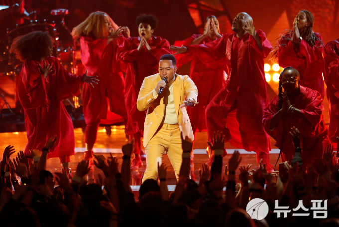 | [로스앤젤레스 로이터=뉴스핌] 남혜경 인턴기자 = 가수 존 레전드가 14일(현지시간) 미국 캘리포니아주 로스앤젤레스에서 열린 '아이하트라디오 뮤직 어워드'(iHeartRadio Music Awards) 무대에 올랐다. 2019.03.14. |
