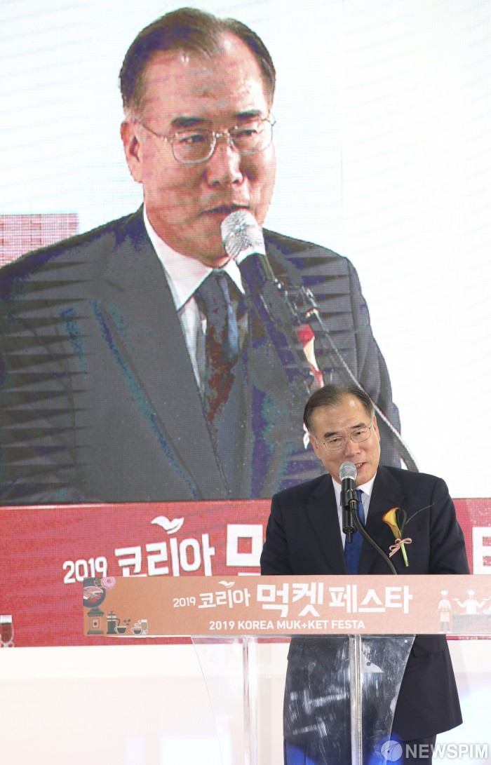 [서울=뉴스핌] 백인혁 기자 = 이개호 농림축산식품부 장관이 14일 오전 서울 서초구 양재AT센터에서 열린 '코리아 먹켓 페스타'에서 축사를 하고 있다. 2019.06.14 dlsgur9757@newspim.com