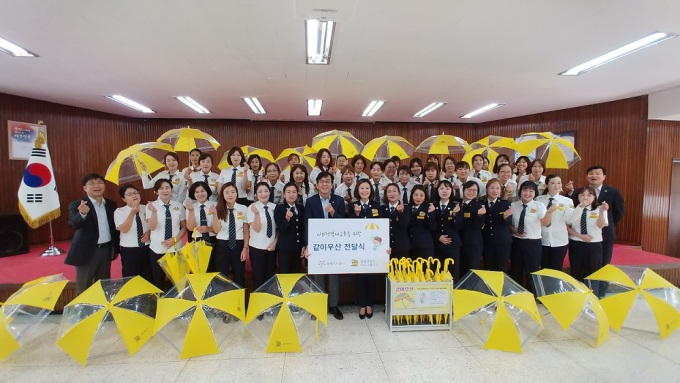[광명=뉴스핌] 박승봉 기자 = 경기 광명도시공사는 17일 광명경찰서 대강당에서 광명경찰서 어머니폴리스 단원들에게 사회공헌사업의 일환으로 <같이우산>을 제작해 전달했다.