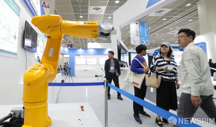 [서울=뉴스핌] 정일구 기자 = 8일 오전 서울 강남구 코엑스에서 열린 '2019 한국전자산업대전'에서 관람객들이 전시장을 살펴보고 있다. 2019.10.08 mironj19@newspim.com