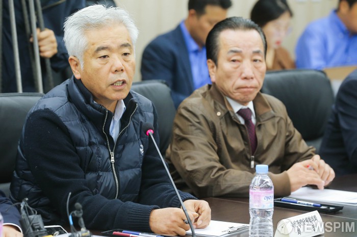 [서울=뉴스핌] 윤창빈 기자 = 김홍길 축산관련단체협의회 회장이 24일 오전 서울 여의도 나라키움 여의도빌딩에서 열린 민관합동 농업계 간담회에서 모두발언을 하고 있다. 2019.10.24 pangbin@newspim.com