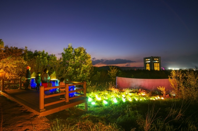 코스 입구 매표소에서 '생명수'로 불리는 호리병 모양의 조명 목걸이를 대여하고 숲길로 들어서면 관람객의 동작을 인식해 코스마다 다양한 색으로 변한다.