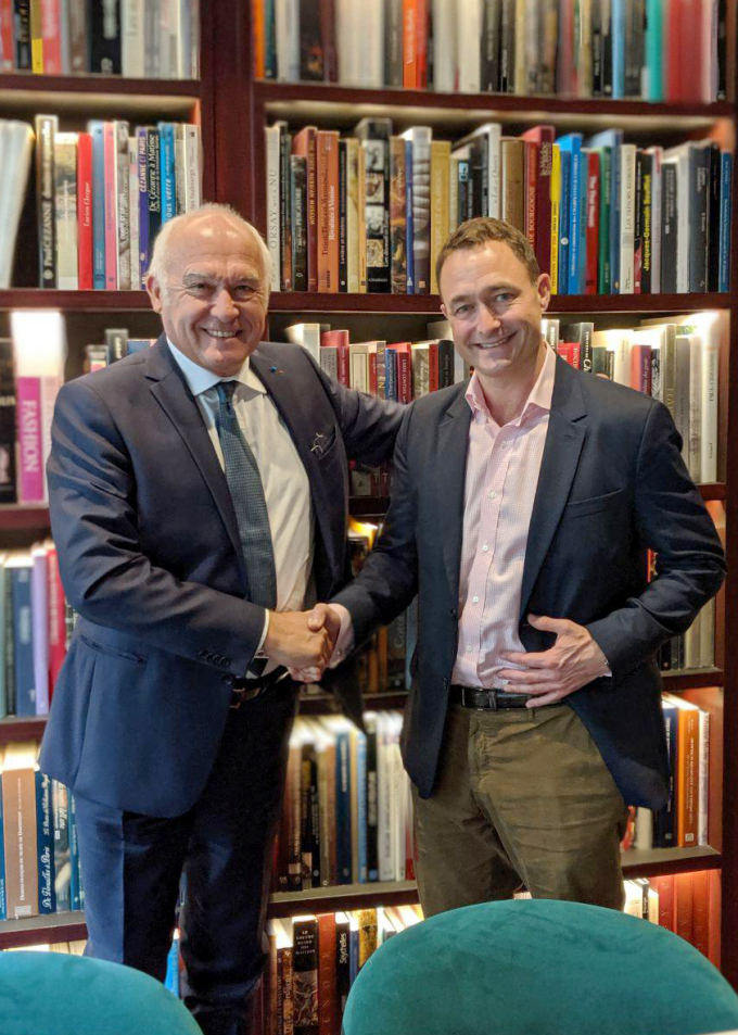 | 티에리 모린 에이치엔티 총괄회장(왼쪽)과 리차드 로튼 우모 CEO [사진=에이치엔티] |