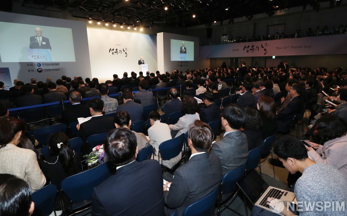 [서울=뉴스핌] 정일구 기자 = 성기학 한국섬유산업연합회 회장이 11일 오후 서울 강남구 섬유센터에서 열린 제33회 섬유의 날 기념식에서 기념사를 하고 있다. 2019.11.11 mironj19@newspim.com