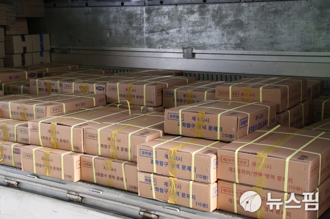 [강릉=뉴스핌] 이순철 기자 = 2020학년도 대학수학능력시험을 이틀 앞둔 12일 오후 강원 강릉교육지원청에 수능 시험지가 도착했다.올해 수능시험에는 도내 7개 시험지구, 44개 시험장, 559개 시험실에서 1만 3654명이 응시한다.