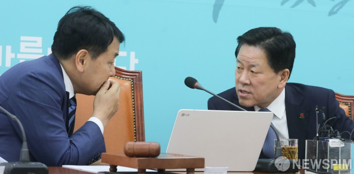 [서울=뉴스핌] 최상수 기자 = 주승용 바른미래당 최고위원(오른쪽), 김관영 의원(왼쪽)이 22일 오전 서울 여의도 국회에서 열린 최고위원회의에서 대화를 나누고 있다. 2019.11.22 kilroy023@newspim.com