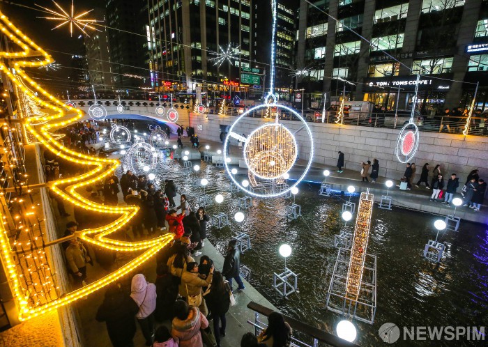 [서울=뉴스핌] 윤창빈 기자 = 13일 오후 서울 종로구 청계광장에서 열린 2019 서울 크리스마스 페스티벌을 찾은 시민들이 축제를 즐기고 있다. 오늘 개막한 페스티벌은 내년 1월 1일까지 관람할 수 있다. 2019.12.13 pangbin@newspim.com