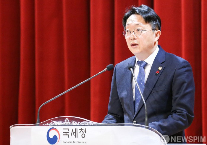 [세종=뉴스핌] 김현준 국세청장이 2일 정부세종청사에서 열린 국세청 시무식에서 새해 세정방향을 제시하고 있다. [사진=국세청] 2020.01.02 dream@newspim.com