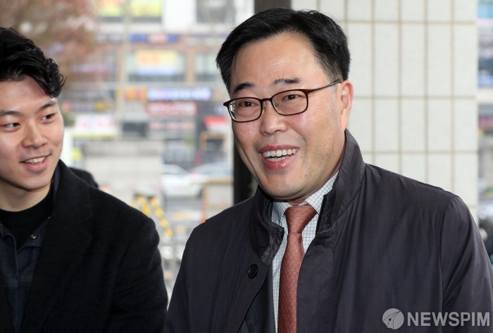 [서울=뉴스핌] 정일구 기자 = '정치자금법 위반' 혐의를 받는 김기식 전 금융감독원장이 13일 오전 서울 양천구 서울남부지방법원에서 열린 1심 선고 공판에 출석하고 있다. 2020.02.13 mironj19@newspim.com