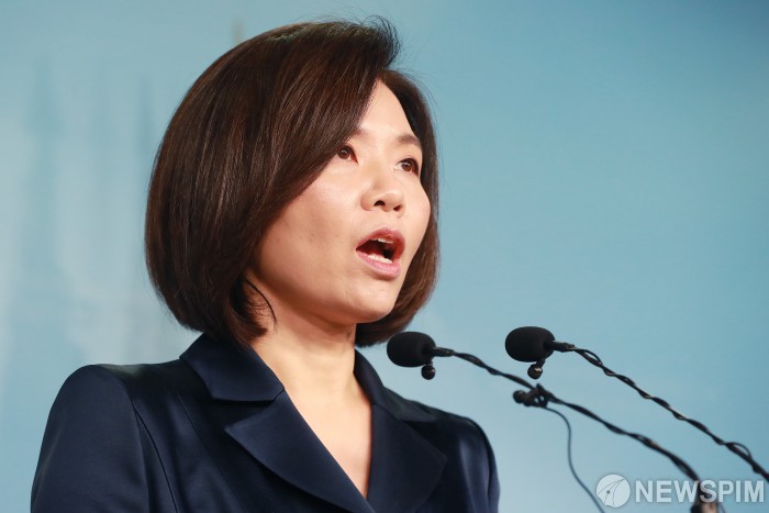 [서울=뉴스핌] 이형석 기자 = 민현주 전 의원이 19일 오전 서울 여의도 국회 정론관에서 인천 연수을 지역 공천 번복사태 관련 입장 기자회견을 하고 있다. 2020.03.19 leehs@newspim.com