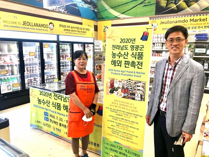 | 전남 영광군은 27일 미국 LA 내 대형마트 전라남도 상설판매장에서 영광 농수산식품 판촉행사를 열었다. [사진=영광군] 2020.07.27 ej7648@newspim.com |
