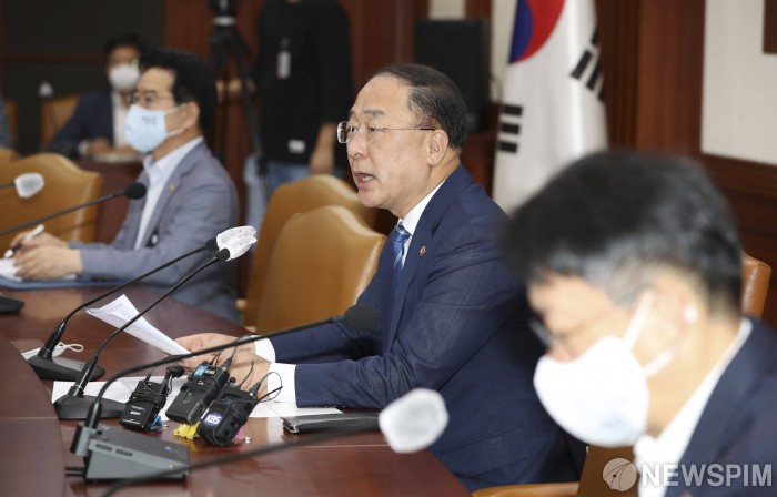 [서울=뉴스핌] 이한결 기자 = 홍남기 부총리 겸 기획재정부 장관이 12일 오전 서울 종로구 정부서울청사에서 열린 제2차 부동산시장 점검 관계장관회의에서 모두발언을 하고 있다. 2020.08.12 alwaysame@newspim.com