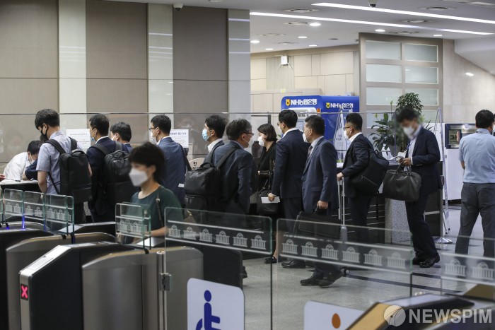 [서울=뉴스핌] 국회사진기자단 = 신종 코로나바이러스 감염증(코로나19) 확진자 발생으로 일시 폐쇄됐던 국회가 업무재개 2일차를 맞은 31일 오전 서울 여의도 국회 후문 출입구가 붐비고 있다. 2020.08.31 photo@newspim.com