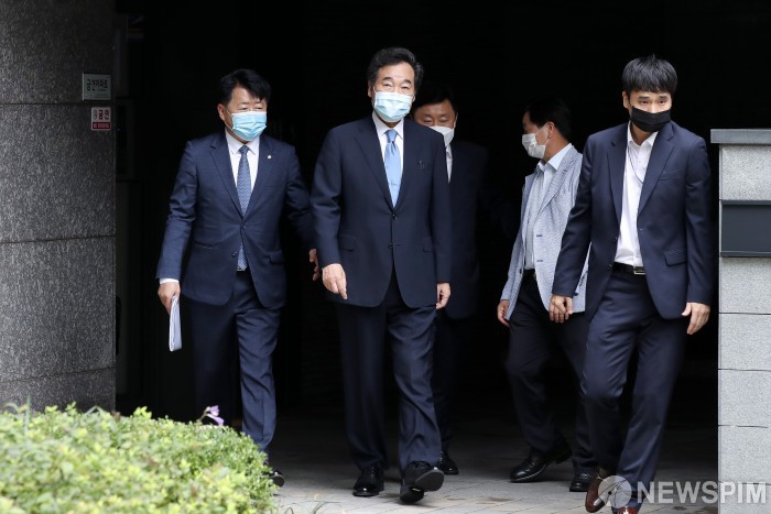 [서울=뉴스핌] 정일구 기자 = 자가격리를 마친 이낙연 더불어민주당 신임 당대표가 31일 오전 서울 종로구 자택을 나서고 있다. 2020.08.31 mironj19@newspim.com