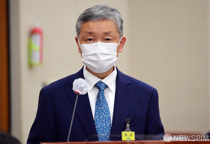 [서울=뉴스핌] 최상수 기자 = 박성진 부산고검장이 16일 국회 법제사법위원회에서 대구, 부산 고검 등에 대한 국정감사에서 인사말을 하고 있다. 2020.10.16 kilroy023@newspim.com