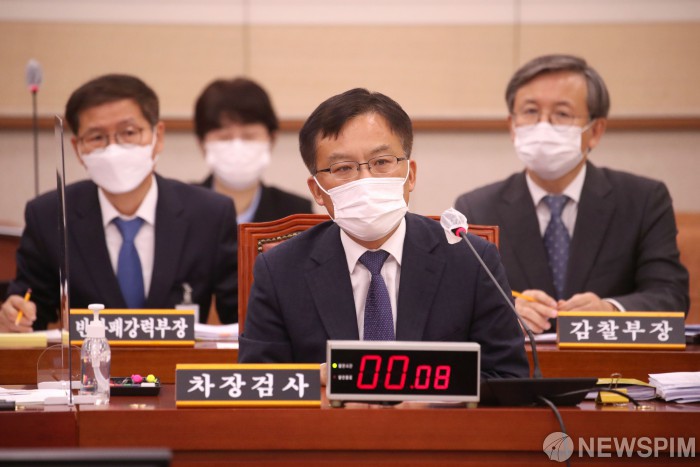 [서울=뉴스핌] 이한결 기자 = 조남관 대검찰청 차장검사가 22일 서울 여의도 국회에서 열린 법제사법위원회의 대검찰청에 대한 국정감사에서 의원 질의에 답변하고 있다. 2020.10.22 alwaysame@newspim.com