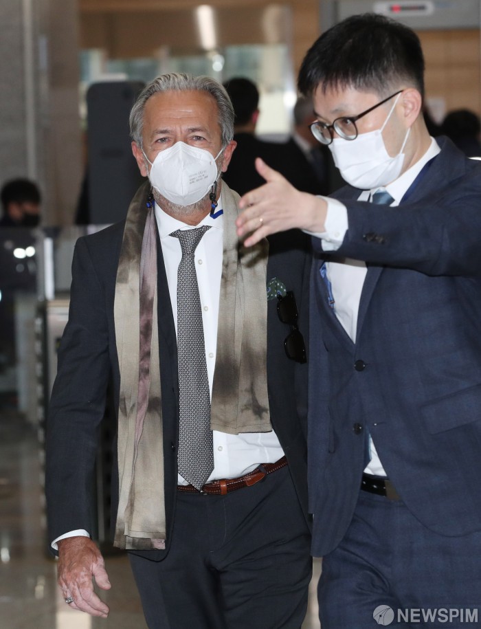[서울=뉴스핌] 김학선 기자 = 마시모 아파로 IAEA 안전조치 사무차장이 3일 오전 서울 종로구 외교부 청사에서 열린 제9차 한·IAEA(국제원자력기구) 고위급 정책협의회에 참석하고 있다. 2020.11.03 yooksa@newspim.com