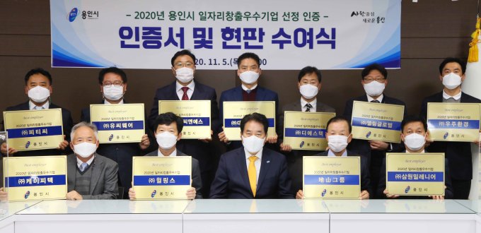 백군기 용인시장은 "코로나19 영향으로 어려운 경제 위기 속에서도 지역 일자리 창출에 힘 써주신 기업 대표들께 감사드린다"며 "지역 성장의 든든한 기반이 되도록 앞으로도 꾸준히 일자리 창출에 앞장서주기 바란다"고 말했다.