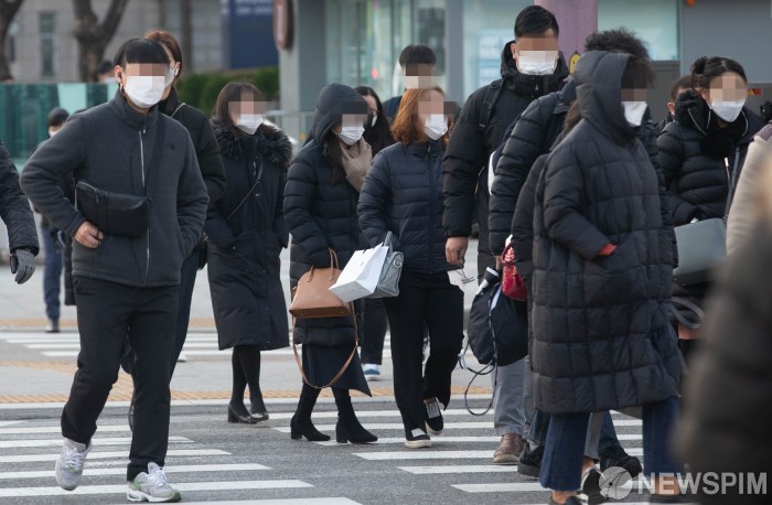 [서울=뉴스핌] 윤창빈 기자 = 30일 오전 서울 종로구 광화문역 인근의 시민들이 영하권으로 떨어진 날씨에 두꺼운 옷차림으로 출근길을 서두르고 있다. 기상청에 따르면 이날 전국에 가끔 구름이 많은 가운데 아침 최저기온은 -8~4도, 낮 최고기온은 4~11도를 보이겠다. 2020.11.30 pangbin@newspim.com