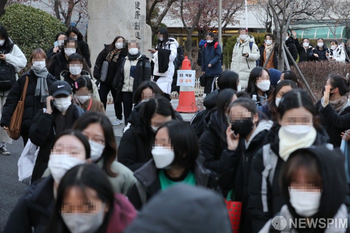 [서울=뉴스핌] 백인혁 기자 = 2021학년도 대학수학능력시험을 마친 수험생들이 3일 오후 서울 서초구 반포고등학교 고사장을 나서고 있다. 2020.12.03 dlsgur9757@newspim.com