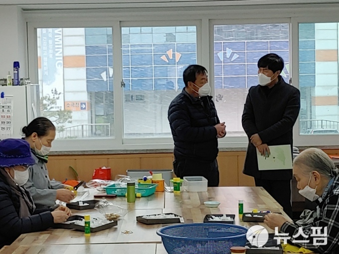 나영근(오른쪽ㅇ) 익산시경로장애인과장이 관내 사회복지시설 149곳을 방문해 현장 간담회를 실시하고 있는 모습[사진=익산시] 2021.02.17 gkje725@newspim.com