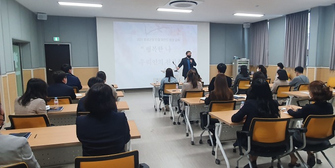 교육은 군민들의 행정기관에 대한 서비스 요구가 날로 높아지고 다양화 됨에 따라 공직자들의 민원응대 수준 향상을 위해 외부 전문 강사를 초빙해 '행복한 나, 우리 안의 친절'이라는 주제로 진행했다.
