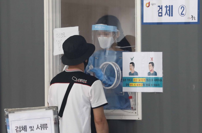| [서울=뉴스핌] 백인혁 기자 = 서울역 광장에 마련된 코로나19 임시 선별검사소에서 한 시민들이 검체 검사를 받고 있다. dlsgur9757@newspim.com |