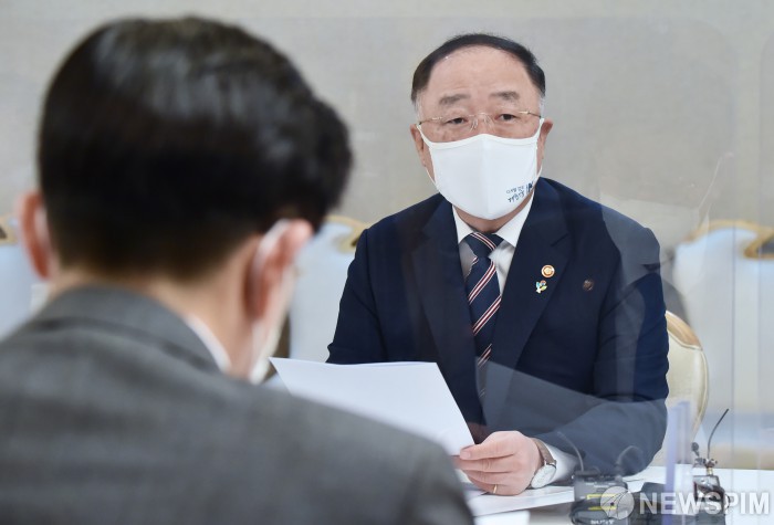 [서울=뉴스핌] 김학선 기자 = 홍남기 경제부총리 겸 기획재정부 장관이 17일 서울 종로구 정부서울청사에서 열린 제24차 부동산시장 점검 관계장관회의를 주재하며 발언하고 있다. 2021.06.17 yooksa@newspim.com