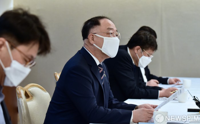 [서울=뉴스핌] 김학선 기자 = 홍남기 경제부총리 겸 기획재정부 장관이 17일 서울 종로구 정부서울청사에서 열린 제24차 부동산시장 점검 관계장관회의를 주재하며 발언하고 있다. 2021.06.17 yooksa@newspim.com