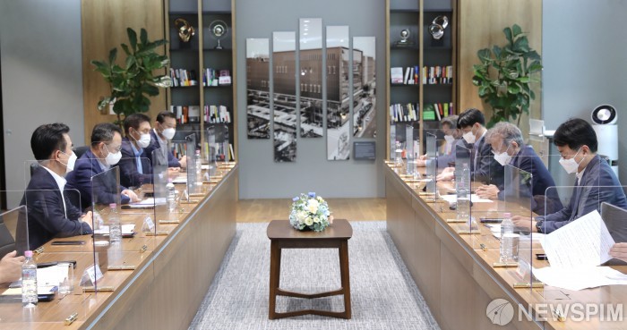 [서울=뉴스핌]권칠승 중소벤처기업부 장관이 2일 서울 강서구 LG사이언스파크를 방문해 상생결제 우수기업 LG전자,협력사 대표들과의 간담회에서 발언을 하고 있다.[사진=중소벤처기업부] 2021.07.02 photo@newspim.com