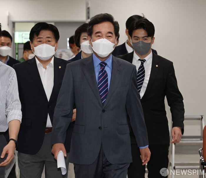 [서울=뉴스핌] 이형석 기자 = 이낙연 더불어민주당 전 대표가 6일 오전 토지공개념 관련 기자회견을 위해 국회 소통관으로 들어서고 있다. 2021.07.06 leehs@newspim.com