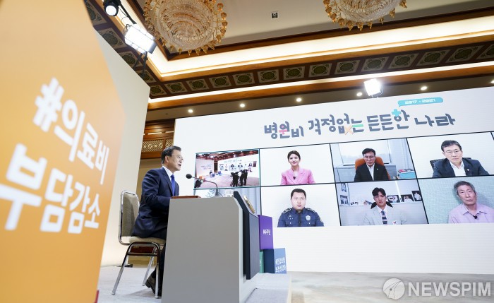 [서울=뉴스핌] 문재인 대통령이 12일 오전 청와대에서 열린 건강보험 보장성 강화대책 4주년 성과 보고대회에서 발언하고 있다.[사진=청와대] 2021.08.12 photo@newspim.com