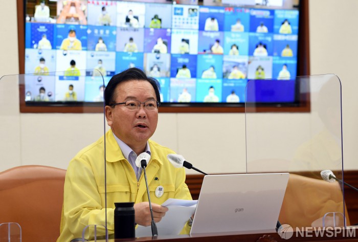 [서울=뉴스핌] 김학선 기자 = 김부겸 국무총리가 27일 오전 서울 종로구 정부서울청사에서 열린 코로나19 중앙재난안전대책본부 회의에 참석해 모두발언을 하고 있다. 2021.08.27 yooksa@newspim.com