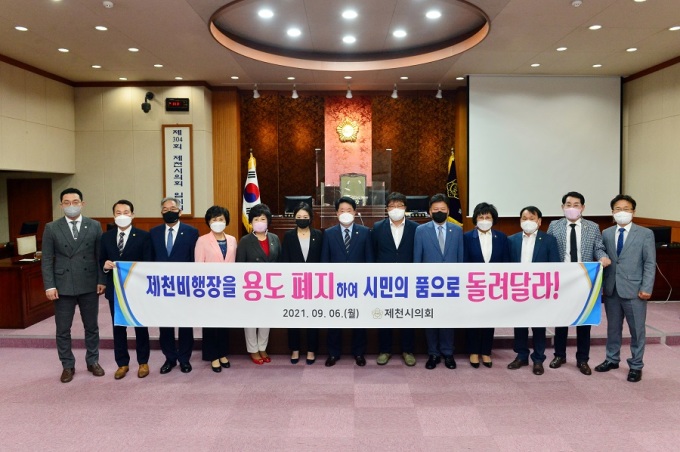 시 의회는 제304회 임시회 1차 본회의에서 제천비행장 용도 폐지와 반환을 요구하는 건의문을 상정해 만장일치로 채택했다.