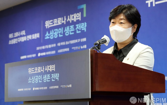 [서울=뉴스핌] 정일구 기자 = 서영교 국회 행정안전위원장이 27일 오전 서울 여의도 중소기업중앙회에서 이동주 더불어민주당 의원·윤창현 국민의힘 의원·뉴스핌 주최로 열린 '위드 코로나 시대, 소상공인 디지털화 전략 토론회'에서 축사를 하고 있다. 이번 토론회는 위드코로나 시대의 소상공인 생존 전략을 주제로 '제로페이 출범 2년의 성과와 한계'를 평가하고, 간편결제 산업의 미래를 조망해 보고자 마련됐다. 2021.09.27 mironj19@newspim.com
