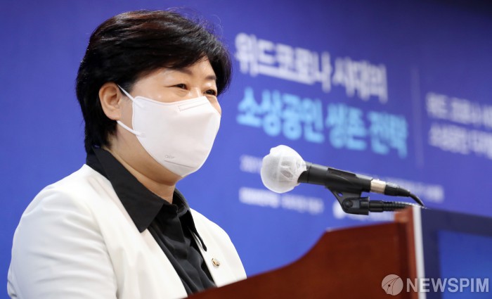 [서울=뉴스핌] 정일구 기자 = 서영교 국회 행정안전위원장이 27일 오전 서울 여의도 중소기업중앙회에서 이동주 더불어민주당 의원·윤창현 국민의힘 의원·뉴스핌 주최로 열린 '위드 코로나 시대, 소상공인 디지털화 전략 토론회'에서 축사를 하고 있다. 이번 토론회는 위드코로나 시대의 소상공인 생존 전략을 주제로 '제로페이 출범 2년의 성과와 한계'를 평가하고, 간편결제 산업의 미래를 조망해 보고자 마련됐다. 2021.09.27 mironj19@newspim.com