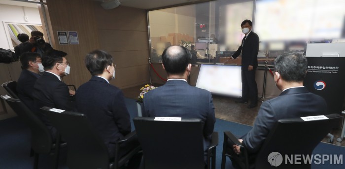 [서울=뉴스핌] 이형석 기자 = 박광온 국회 법제사법위원장과 최기상 더불어민주당 의원이 19일 오전 서울 동대문구 휘경동에 위치한 서울보호관찰소·위치추적중앙관제센터를 현장방문해 관계자의 설명을 듣고 있다. 2021.11.19 leehs@newspim.com