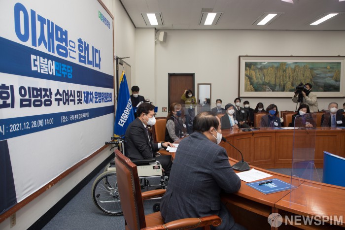 [서울=뉴스핌] 최상수 기자 = 이철휘 국방안보특별위원장이 28일 오후 더불어민주당 국회 당대표실에서 열린 국방안보특별위원회 임명장 수여식에서 인사말을 하고 있다. 2021.12.28 kilroy023@newspim.com