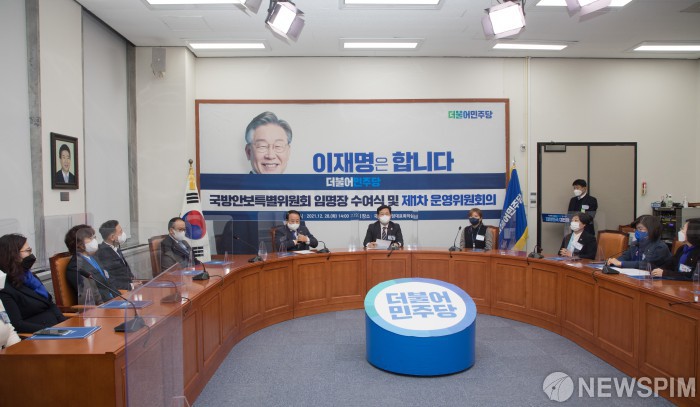 [서울=뉴스핌] 최상수 기자 = 이철휘 국방안보특별위원장이 28일 오후 더불어민주당 국회 당대표실에서 열린 국방안보특별위원회 임명장 수여식에서 인사말을 하고 있다. 2021.12.28 kilroy023@newspim.com