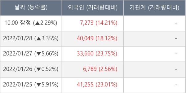 [표] 외국인ㆍ기관 순매매량 (단위 주)